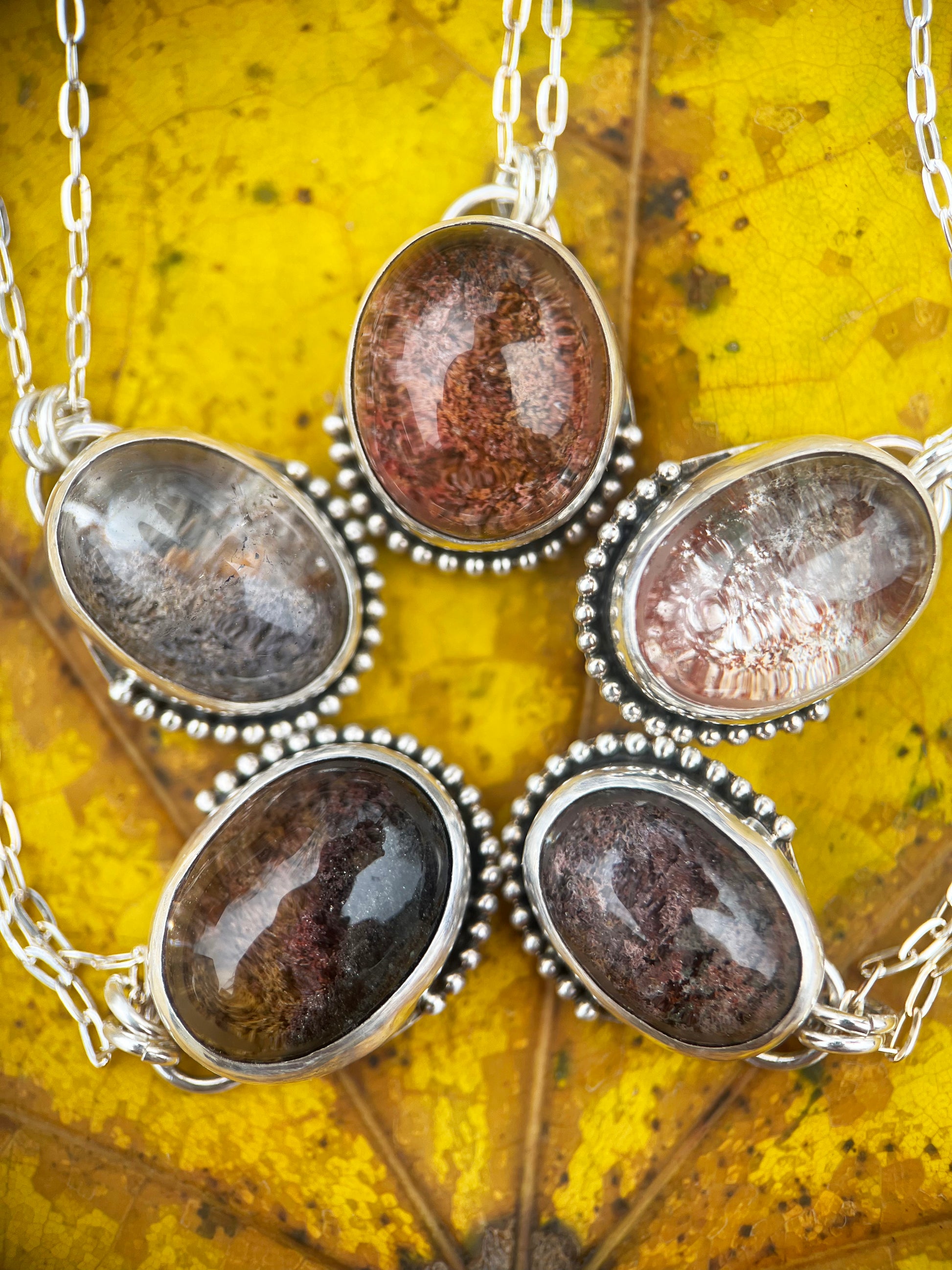 With the Eternal Oak necklace, you can keep your very own, tiny forest close to your heart long after the last of the leaves have fallen. Each necklace is handcrafted in sterling silver with the most beautiful, high-grade garden quartz in colors that mimic trees in an autumn forest, much like looking over the peak of Cadillac Mountain.